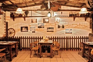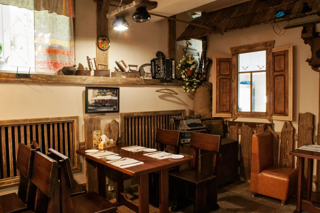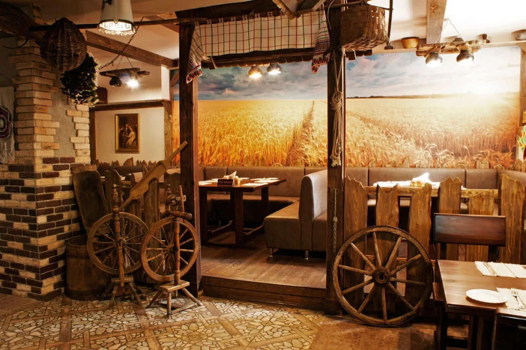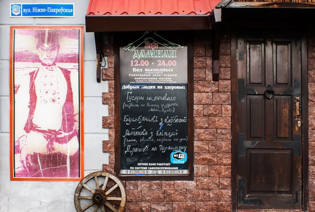 Кафе «Дамиан» оформлено в традиционном белорусском стиле, уютно и привлекательно для тех, кто ценит национальный колорит