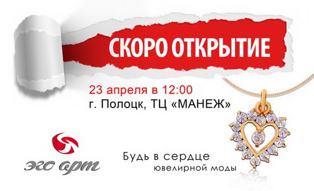 Уже совсем скоро открытие нового ювелирного магазина «Эго-Арт».