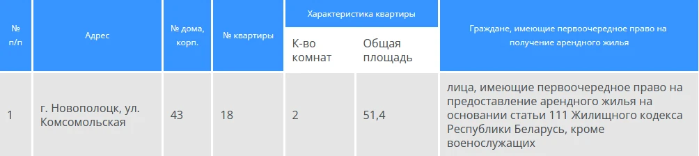 С подробной информацией о наличии арендного жилья можно ознакомиться в установленном порядке через службу «Одно окно» Новополоцкого горисполкома.