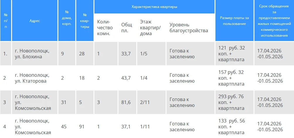 В Новополоцке объявили приём заявлений на арендное жильё в апреле
