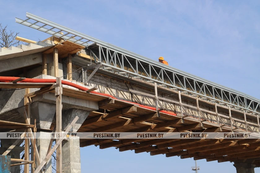Сейчас на объекте ежедневно задействовано более 20 специалистов. Ведутся работы по устройству мостового полотна, монтажу водоотводящих систем, гидроизоляции и подготовке к установке ограждений.