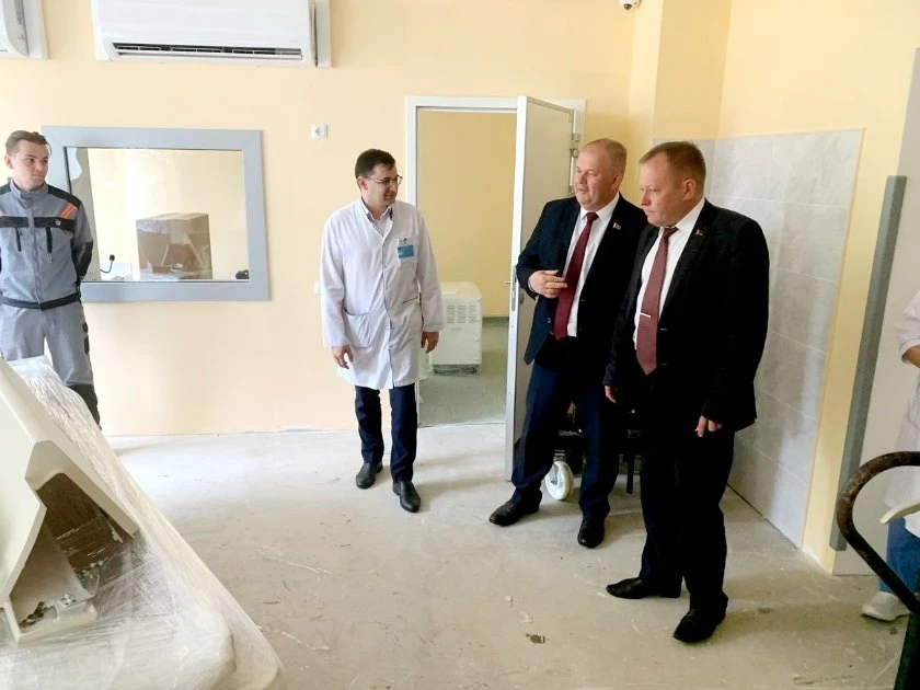 Также Михаил Леонтьевич посетил Полоцкую центральную городскую больницу. Там уже выполнены строительные работы в помещениях отделения лучевой диагностики. На завершающем этапе находятся работы по установке и монтажу нового аппарата рентгеновского компьютерного томографа.