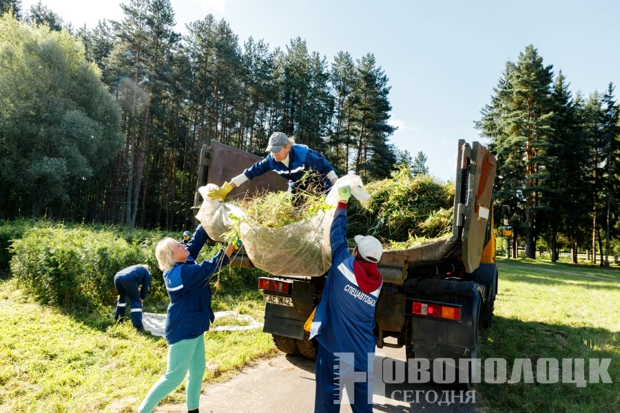 Масштабная акция по благоустройству охватила каждый уголок городского пейзажа. Новополочане из различных отраслей профессиональной деятельности приводили в порядок клумбы, убирали мусор, ветки деревьев, листья не только на прилегающих территориях своих предприятий, учреждений, но и на закрепленных за ними участках природного массива. Например, сотрудников управления социальными объектами ОАО «Нафтан» корреспонденты «НС» встретили недалеко от Калининского моста. Субботним утром работники УСО отправились сгребать свежескошенную траву и сухую растительность.