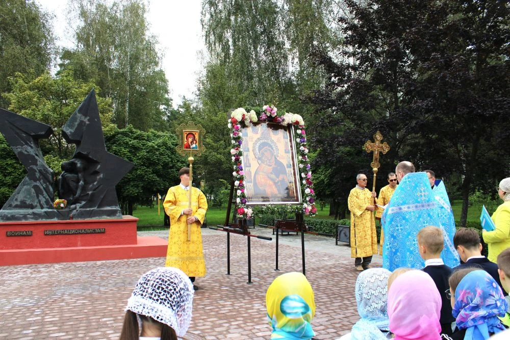 Завершилось торжественное шествие у храма «Нечаянная Радость», где Владимирскую-Новополоцкую икону встретили прихожане и духовенство во главе с архиепископом Феодосием. Все присутствующие вновь вознесли молитвы перед святыней – Небесной Покровительницей города.