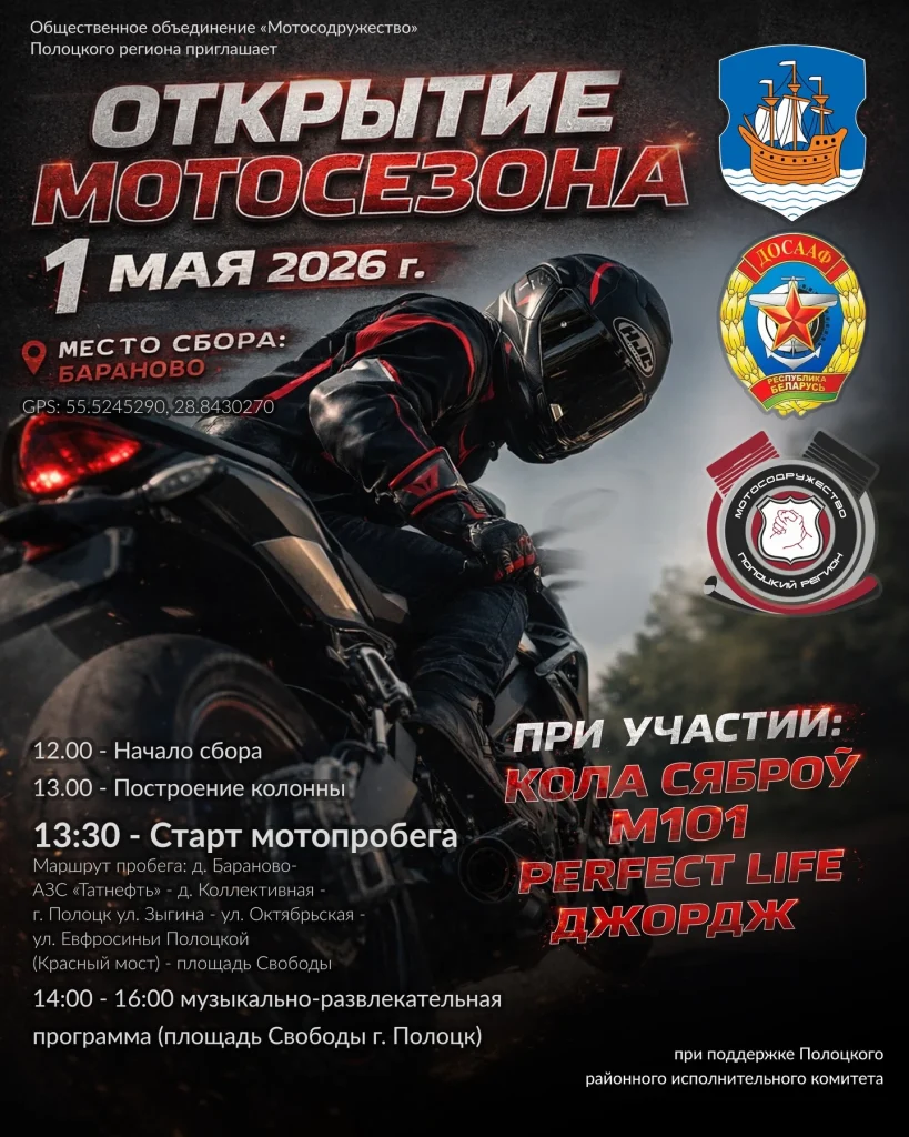 Организатором выступает общественное объединение «Мотосодружество» Полоцкого региона при поддержке местных органов власти.