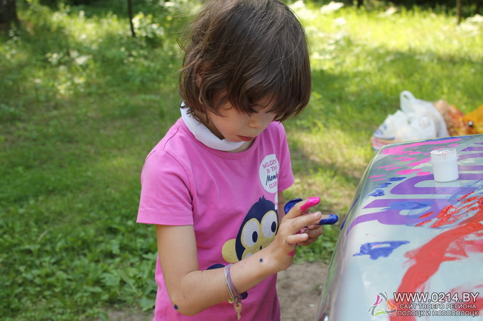 Затем детям дали гуашь и разрешили раскрасить свои автомобили.