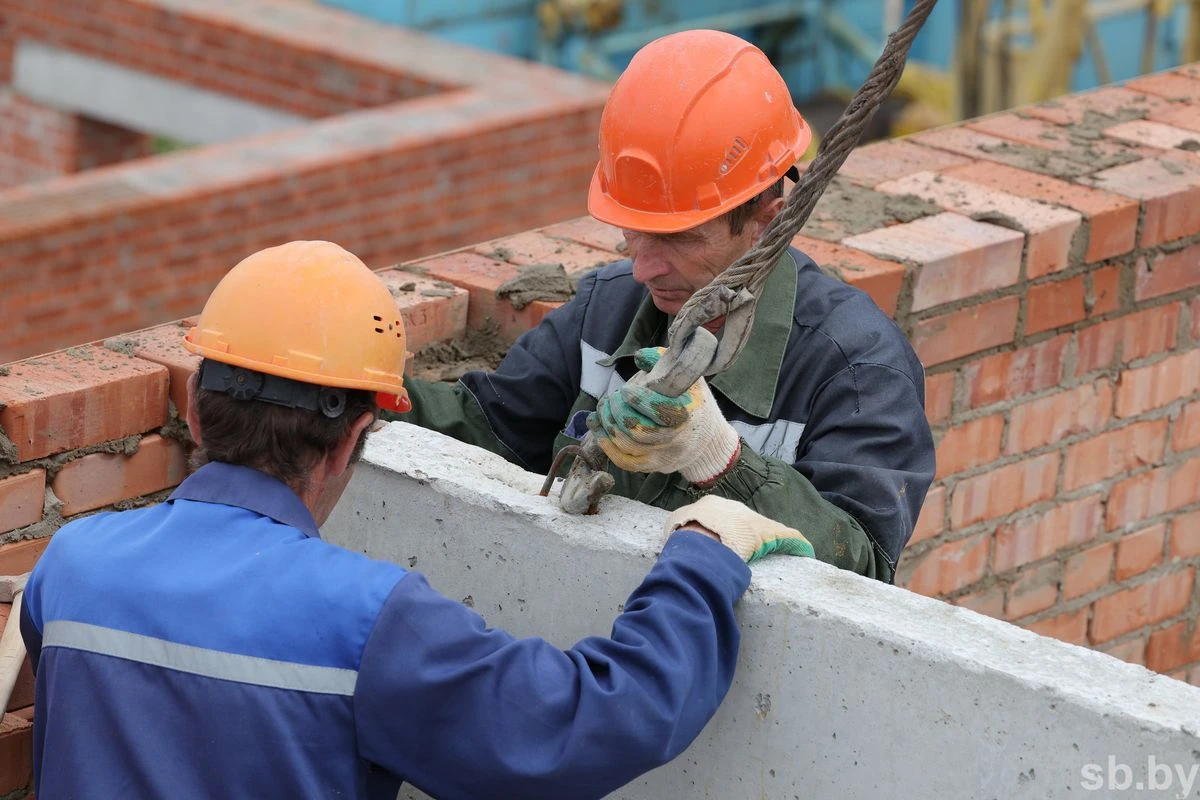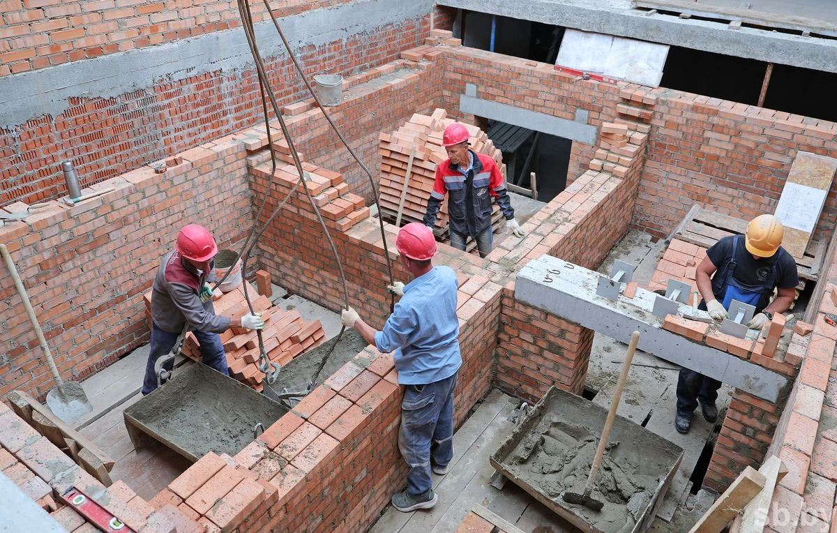 06-08-2025 Фото Антона Степанищева. Витебская область, Полоцк. Строительство поликлиники в микрорайоне №4 жилого района «Аэропорт», укладка кирпича