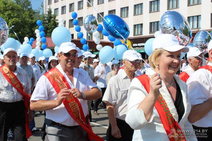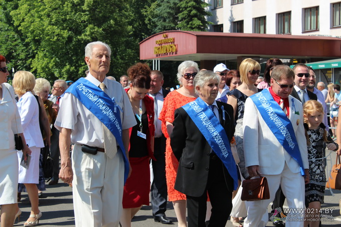 Открыло череду торжественных мероприятий традиционное шествие, собравшее администрацию города и гостей города во главе с председателем городского исполнительного комитета Натальей Ивановной Кочановой. За ними последовали представители духовенства и почетные граждане Новополоцка. Выход колонны представителей предприятий и организаций города обозначило градообразующее предприятие ОАО «Нафтан», затем которым последовали ОАО «Полоцктранснефть Дружба», СООО «ЛЛК Нафтан», ОАО «Измеритель» и многие другие. Также участие в праздничном шествии приняли представители учреждений здравоохранения и образования и творческие коллективы города.