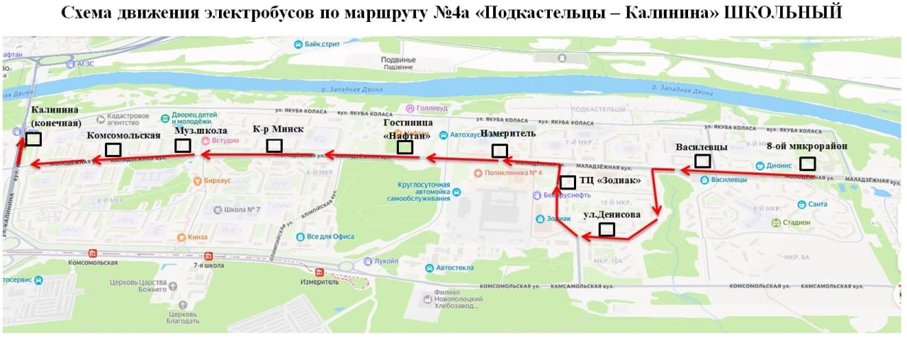 Схема маршрута школьного автобуса 4А в Новополоцке