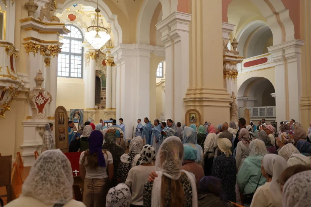 Десятки верующих собрались на торжественную литургию под сводами древней Софии в день Успения Пресвятой Богородицы. Возглавил службу митрополит Минский и Заславский, Патриарший Экзарх всея Беларуси Вениамин.