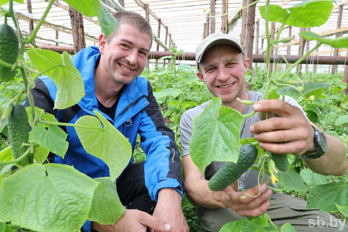 Ночевать в теплицах, каждые 40 минут подбрасывать топливо в печки‑буржуйки… Еще недавно это казалось 32‑летнему Александру Лазаренку и 31‑летнему Владимиру Смертьеву фантастикой. Теперь друзья налаживают агробизнес, собирая урожаи зелени и огурцов на месте, где прежде рос лишь бурьян. 130 соток под теплицы, море труда и смелые планы — побывали в гостях у начинающих фермеров из Полоцкого района.