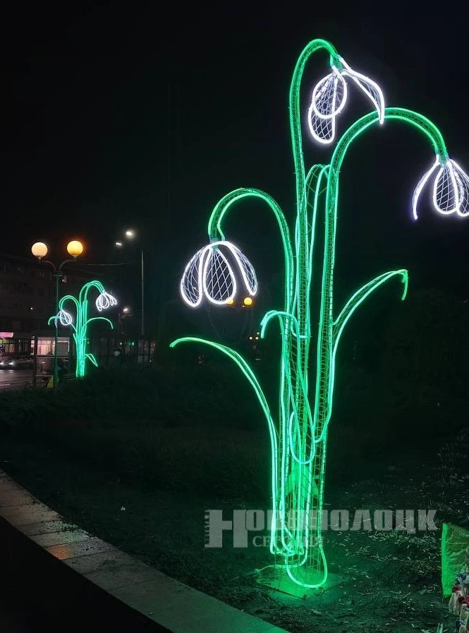 В Новополоцке появились новые световые фигуры-подснежники