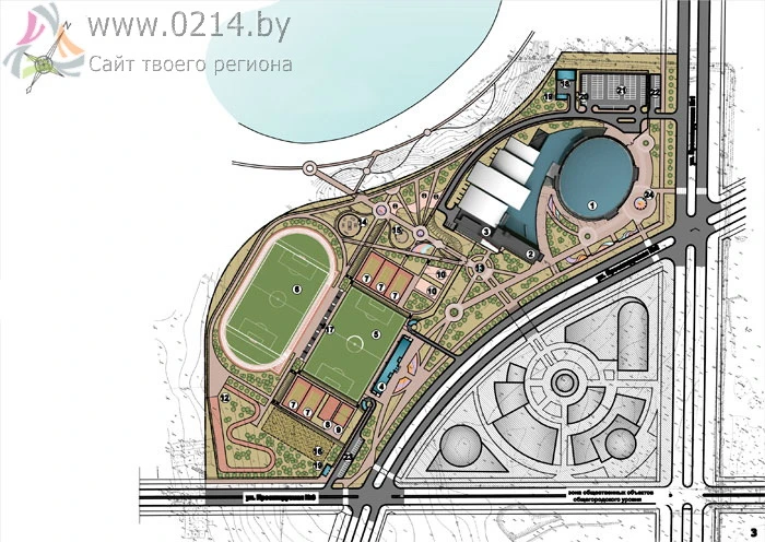- Тренировочное футбольное поле 105×68 м с искусственным покрытием и подземной стоянкой для автотранспорта на 273 м/мест